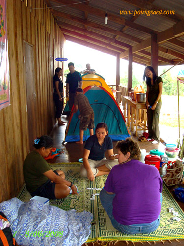 จัดที่นอนเพราะว่าไม่มีไฟฟ้า
