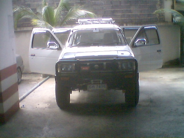 เครื่องยนต์ที่ใช้นี่ TD25 หรือเปล่าครับ บอกตามตรงครับว่ารถเท่มากเลยครับ ถ้าเอาไปใส่คานแข็งผมว่ามันสุดยอดเลยครับ เพราะคุณติดวิ้นใส่กันชนหน้าแบบ 4WD แล้ว ถ้าแปลงเป็นขับ 4 ตัวจริงแล้วสวมรองเท้าอวบๆใหญ่ๆสักหน่อยล่ะก็สุดยอดครับ ออปชั่นภายในเกี่ยวกับระบบ ไฟฟ้า-อิเล็กทรอนิกส์ และของตกแต่งเช่นเบาะนั่ง คอนโซนเกียร์ แผ่นบุรถต่างๆ ของคุณมันก็สุดยอดแล้วครับ(เหนือกว่ารถเก๋งขนาดเล็กบางรุ่นด้วยครับ) ถ้าเป็น 4WD ตัวจริงล่ะก็สุดยอดเลยครับ