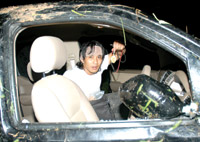 "ต๊อก"ศุภกรณ์ กิจสุวรรณดาราหนุ่มขับรถกลับจากถ่ายหนังแรมโบ้ 4 ที่เชียงใหม่ ขับพุ่งชนเนินดินรวมทั้งพลิกคว่ำ แต่ปลอดภัย เจ้าตัวบอกโชคดีที่มีองค์ จตุคามฯ