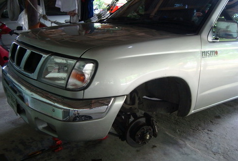 สำหรับจานดิสก์เบรกนาวาร่าใหญ่กว่าของสกายไลน์นิดหน่อยครับ ของสกายไลน์ 280 มม.ของนาวาร่าไม่น่าเกินกันไปกว่านี้ 10 มม. แต่ความหนา ของสกายไลน์หนากว่าครับ.....