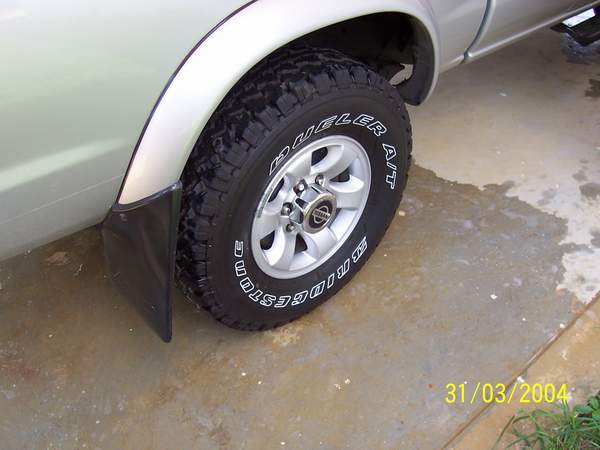 ผมใช้ ฟรอนเทียร์ 4WD มา 2 ปีแล้ว ยางสแตนดาร์ดเดิม 255/70/15 ตอนนี้ดอกยางใกล้หมดแล้ว อยากจะเปลี่ยนยางใหม่ที่หน้ากว้างกว่าเดิม เป็น 265/70/15 ครับ ตอนนี้ดูอยู่ 2 ตัวคือ ยางสแตนดาร์ด ยี่ห้อเดิม( bridgestone dueler AT) กับ BF GOODRICH รุ่น MACCADAM ครับ