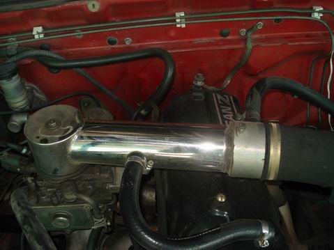 พร้อมกันนั้นได้ทำการย้าย MIX โดยยกเลิกการเจาะคาร์บูพร้อมกับรื้อหม้อกรองเดิมที่ครอบคาร์บูออก ใช้ครอบคาร์บูที่ทำขึ้นใหม่ พร้อมกับย้าย MIX ออกมาให้ห่างคาร์บูประมาณ 1 ฟุต โดยใช้ MIX ขนาด 28 MM ดังรูป