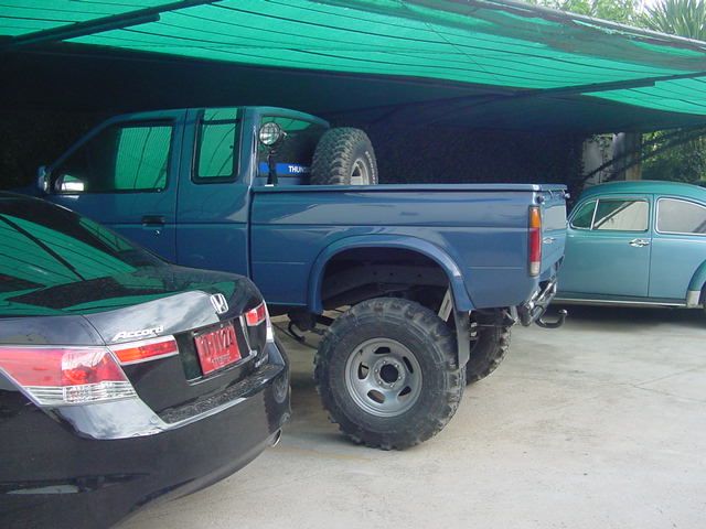 -รูปแนบคต.นี้....ซ้าย Big M เครื่องฝาแดง ยกบอดี้ 4 นิ้ว ตัดท้ายกระบะ......ขวา เทอราโน่วัน ยกบอดี้ 2 นิ้ว....ให้ดูว่า บันได ไม่ได้ทำให้รถดูดี(เลย) ..ต่อมาถอดออกทั้ง 2 คันครับ...