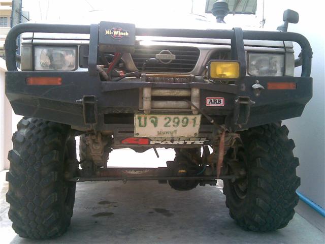 กันชนหน้าเดิมๆ ใส่เหล็กหนาเพิ่มด้านในเพื่อความแข็งแรง พร้อมเจาะด้านหน้า วาง วินซ์ warn 9000 i ครับ