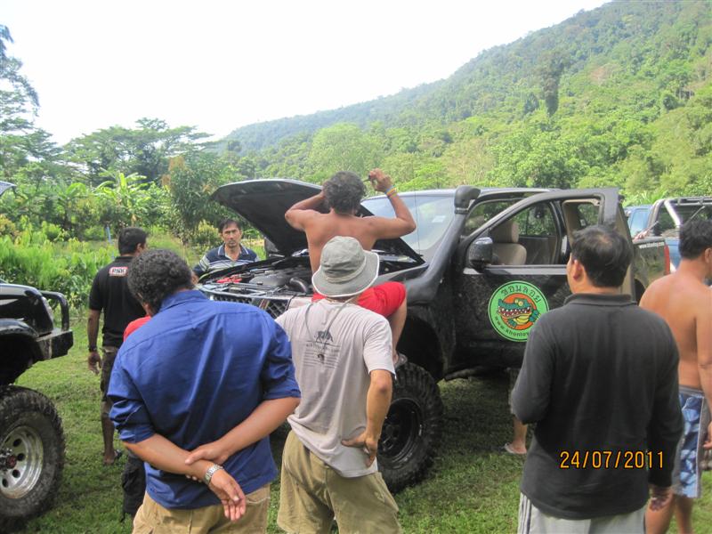 ตามกำหนดการเดิม จะเข้าไปลุยที่คลอง 3 กันต่อ แต่ต้องมาซ่อมรถที่จมน้ำจากเมื่อคืนกันก่อน