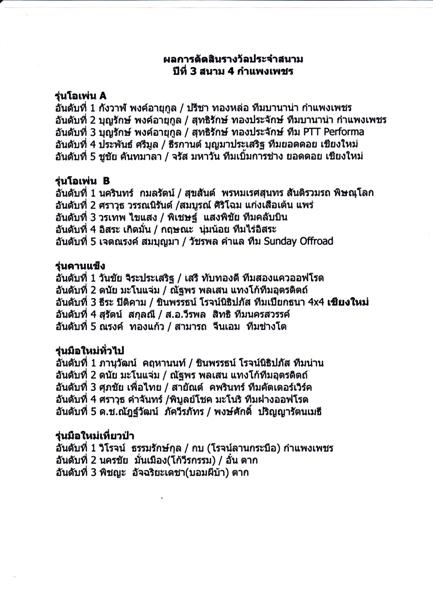 ผู้จัดการแข่งขัน : ชมรมออฟโรดบานาน่าทีม (กำแพงเพชร)