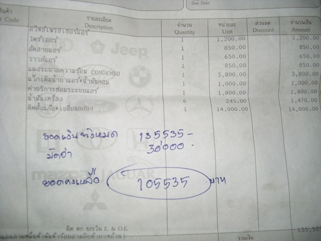 ที่ผมสังเกตุนะ..มีค่าบริการ3000+ค่าบริการซ่อมแอร์1800เท่านั้น ทำรถทั้งคัน+ใช้เวลานาน.....