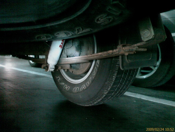 รถคันนี้ Big-M kingcab ปี 95 ยกขึ้นประมาณ 2-3 นิ้วอยู่แล้ว โดยด้านหน้า รองก้อนปีกนก + ขันทอร์ชั่นบาร์ ด้านหลัง โตงเตง 7" ใส่ยาง 235/70/15 ด้านหลังมีถังแก๊ส 96 ลิตรด้านติดเก๋ง