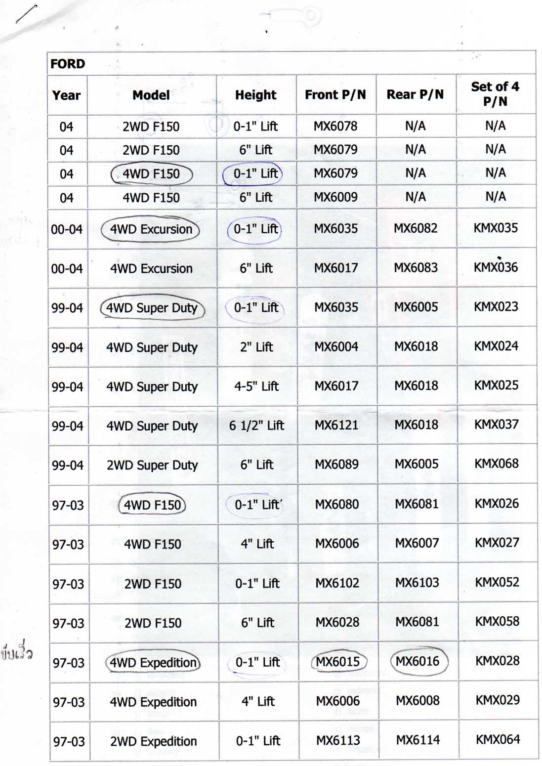 เบอร์โช๊คอัพ MX-6 สำหรับ MU-7 Standard หน้าต้องสั้นกว่า 16" หลังต้องสั้นกว่า 12" ลองไปวัดอย่างที่ผมบอกดูครับ