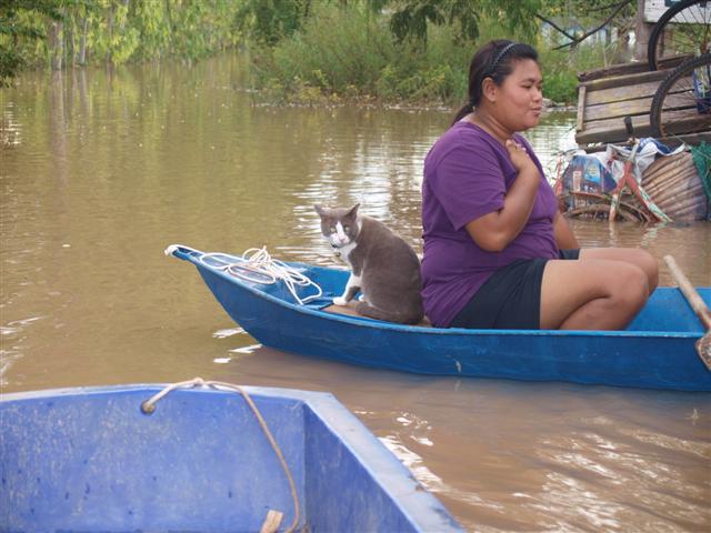 น้องแมวนั่งเรือมาด้วย เจ้าของแจ้งว่า มันกลัวจะทิ้งมันอยู่ตัวเดียว