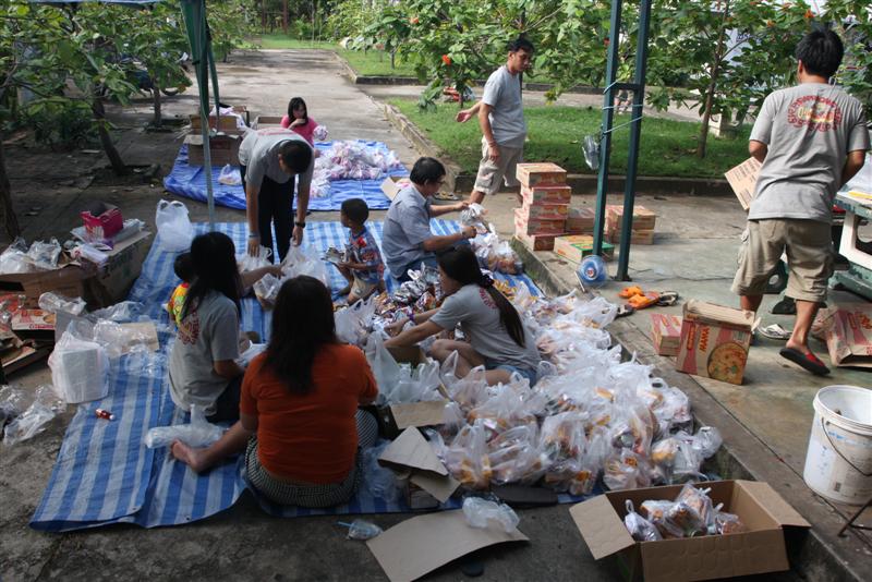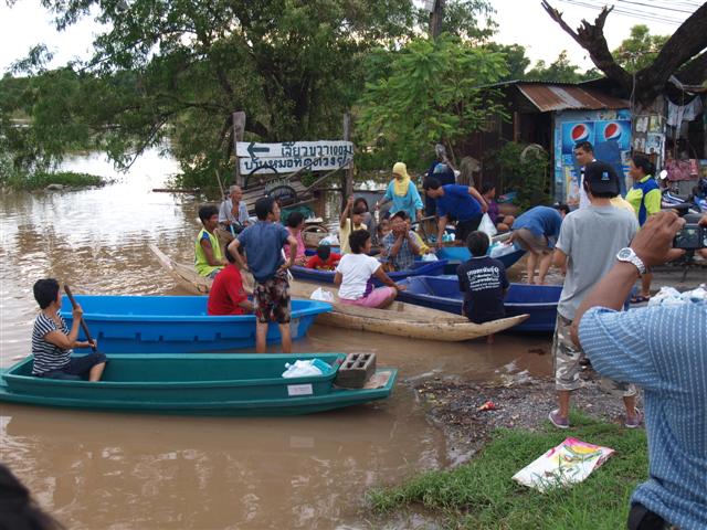 ถ่ายของ ถุงยังชีพ ไปลงเรือเพื่อนำไปแจกจ่าย