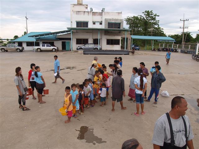 ชาวที่ออกมารับความช่วยเหลือ