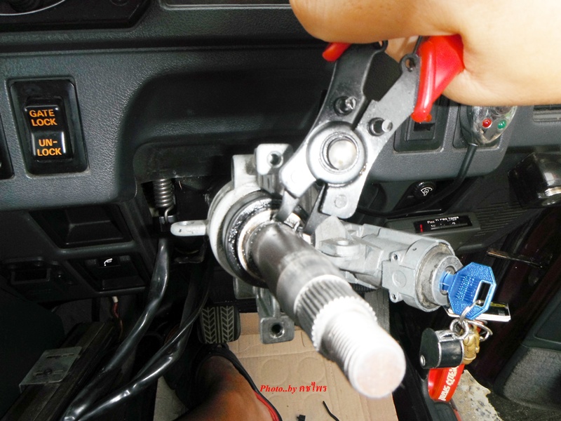 เราจะใช้คีมถ้าง ร้นเอาแหวนล๊อกแกนพวงมาลัยขึ้นมา