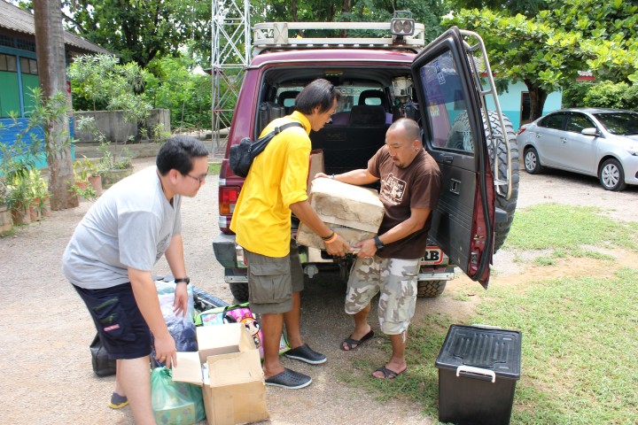พวกผมมาช่วยพี่เจี๊ยบเอาของมาบริจาคโรงเรียนครับ หนังสือเล็กๆน้อยๆ