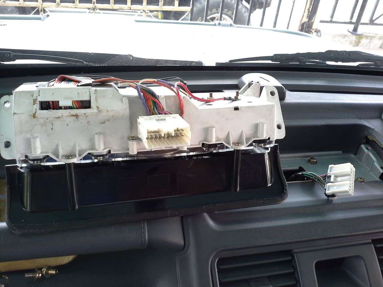ถอดหลอดไฟหน้าปัทม์ออก หมุนทวนเข็มแล้วดึงขึ้น ค่อยๆน๊ะครับ มันอายุเยอะแล้ว จะกรอบ