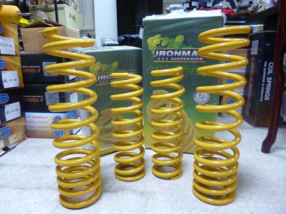 สปริง Ironman มีทั้งยก 2 นิ้ว / สแตนดาร์ด ช่วยลดอาการกระด้าง และช่วยซับแรงกระแทกจากการตกหลุม ด้วยคุณสมบัติ สตีล อัลลอย เป็นเหล็กที่เหมาะสำหลับทำสปริงเพราะมีอาการล้าหรืออ่อนได้อยาก รวมมา 2-3 คันไม่ว่าจะเป็นรถอะไรก็ได้ครับ ให้ราคาพิเศษ