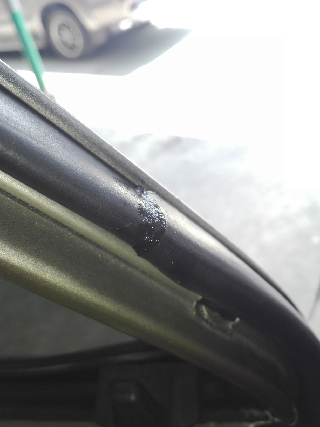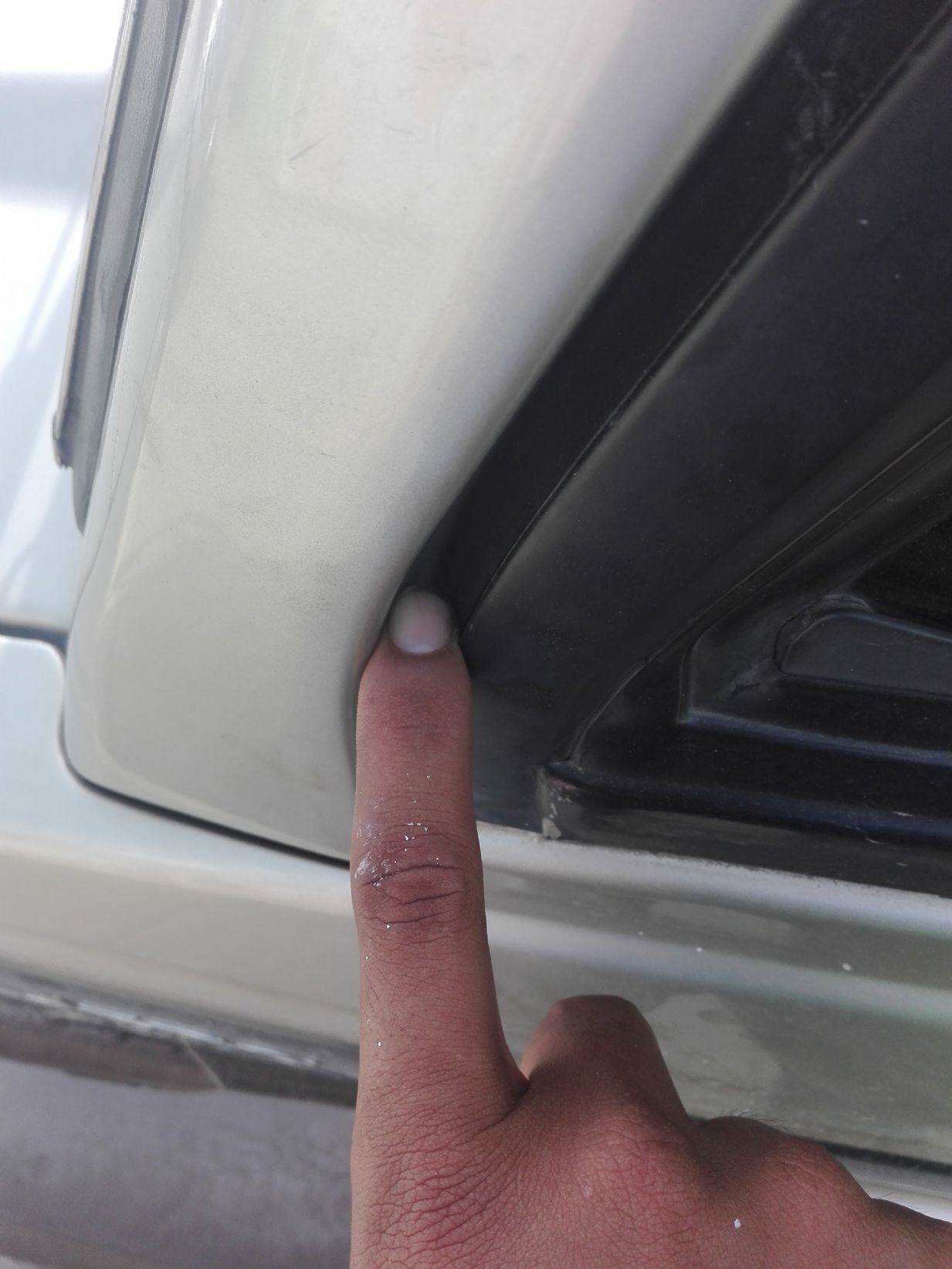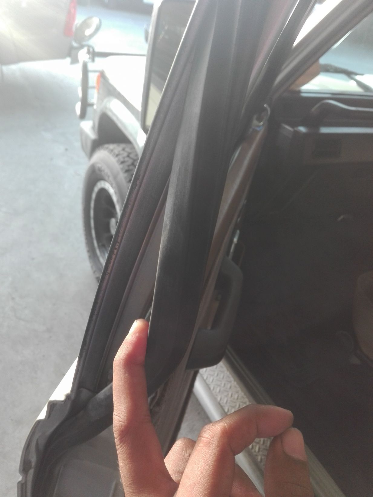 ตอนนี้ทราบจุดบกพร่องแล้วครับ เป็นเพราะบานประตูผมปรับไม่เท่ากันครับ ผมลองเอายางไปใส่บานฝั่งคนขับปรากฏว่ายางแนบสนิตดีครับ แต่ฝั่งคนนั่งผมบานมันห่างออกมานิดนึงครับ รูปนี้ฝั่งคนขับนิ้วเข้าไม่ได้ครับ
