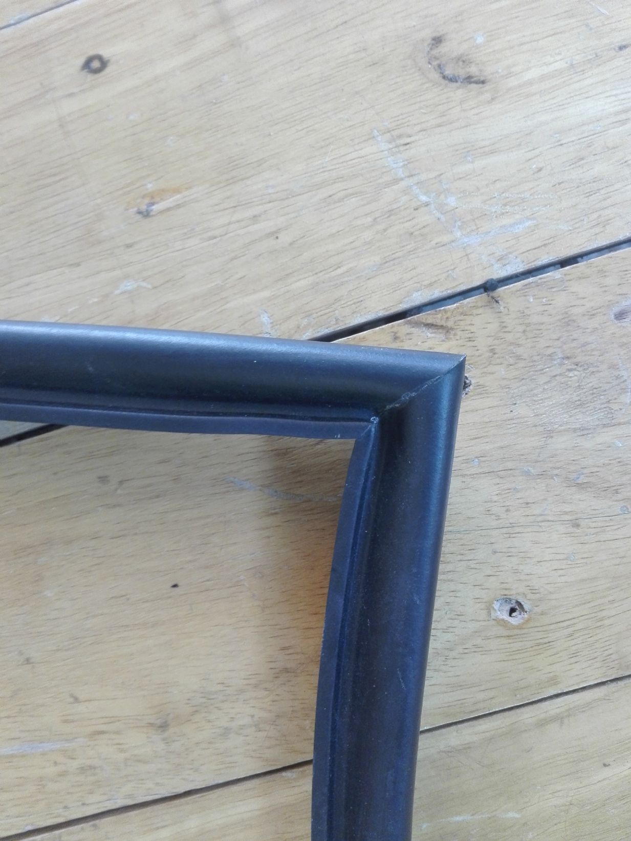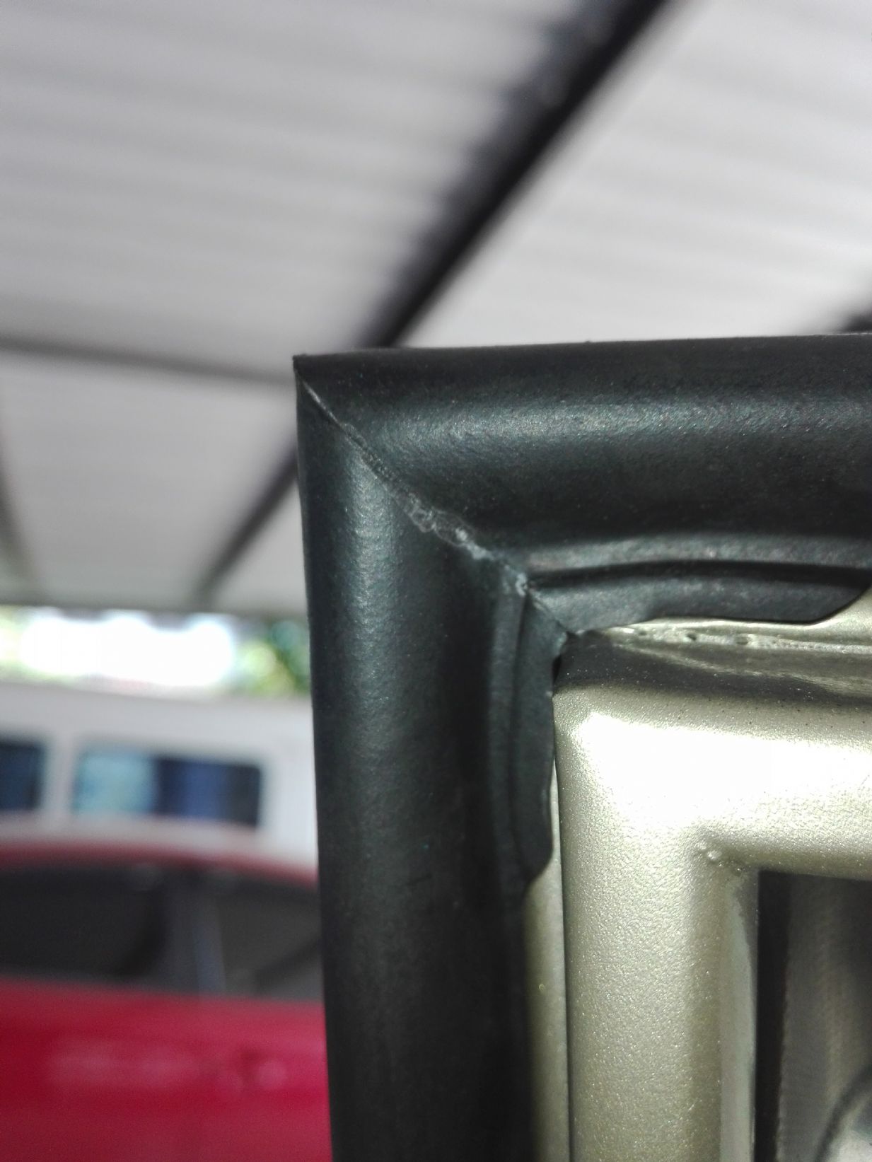 จากนั้นวัดขนาดความยาวของยางอันเก่าครับว่าได้ขนาดเท่าไร แล้วนำยางเส้นที่ต่อเข้ามุมไว้ ตัดให้ได้ขนาดเท่ากันโดยทำการเข้ามุมอีกที่นึงตรงเสาเอครับมุมนี้ตอนตัดผมกะเอาครับ เลยไม่ได้ถ่ายรูปไว้ รูปตอนที่ติดกาวร้อนแล้วครับเนียนๆงงง