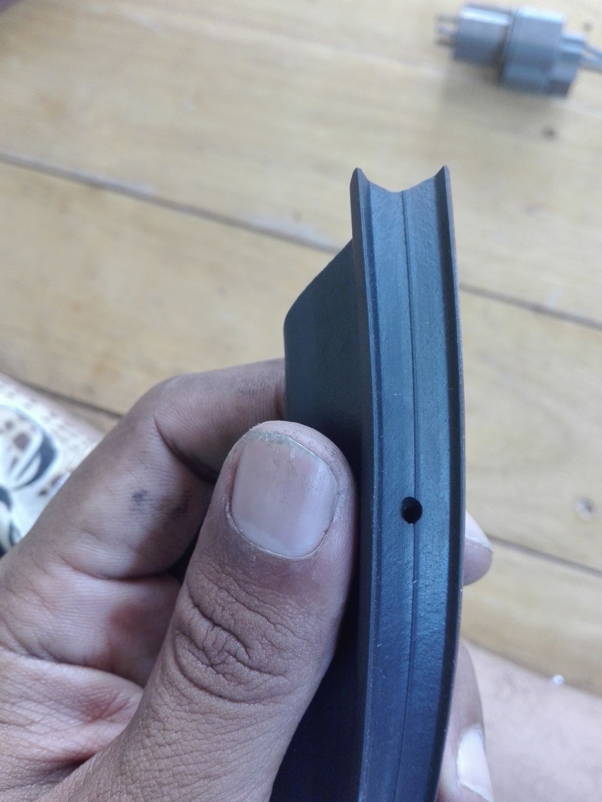 รูปนี้ฝั่งคนนั่งที่diyยางไปครับ สังเกตุได้ครับว่าเล็บผมเข้าจนสุดเลยครับ เดียวผมต้องปรับบานประตูขึ้นนึดนึงครับ