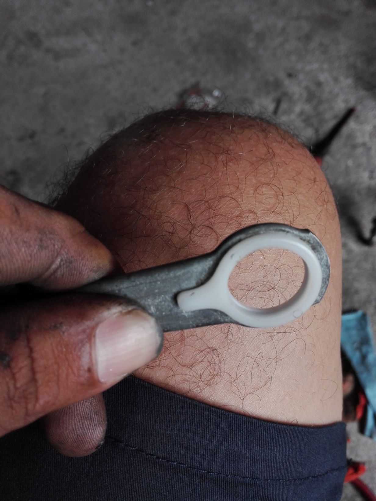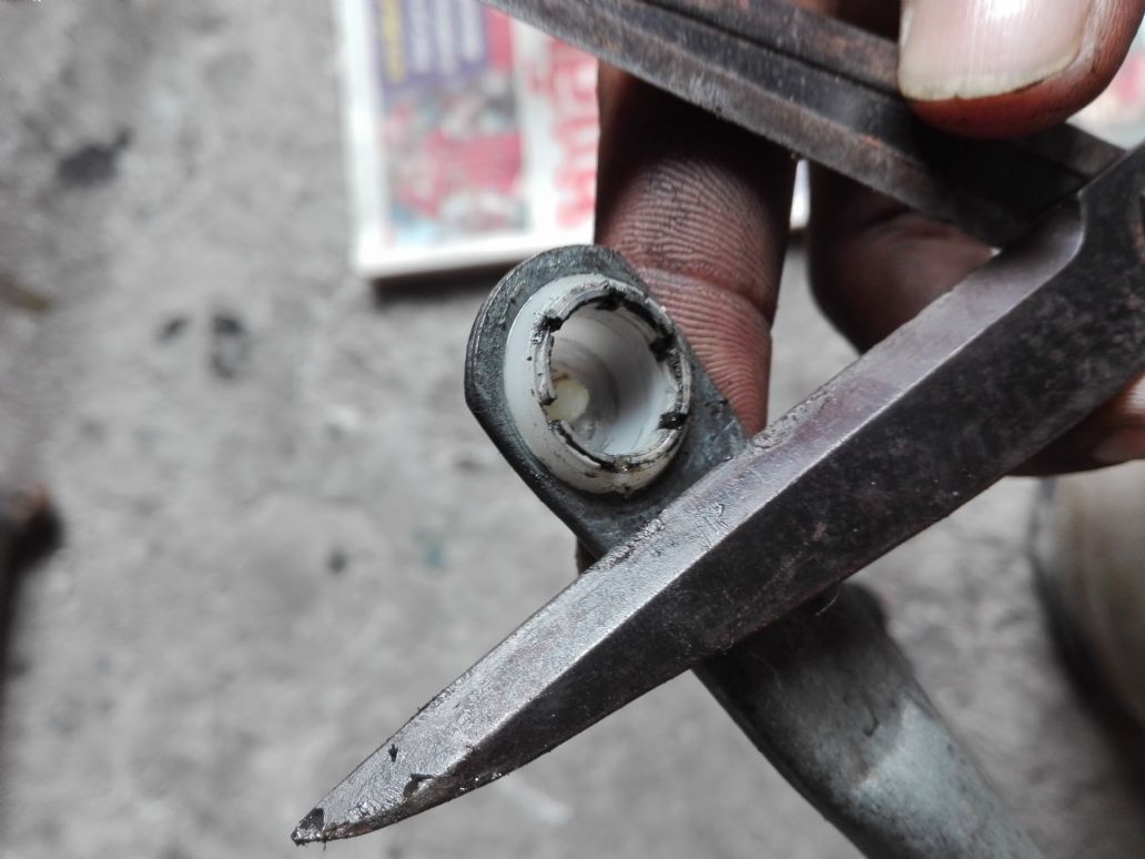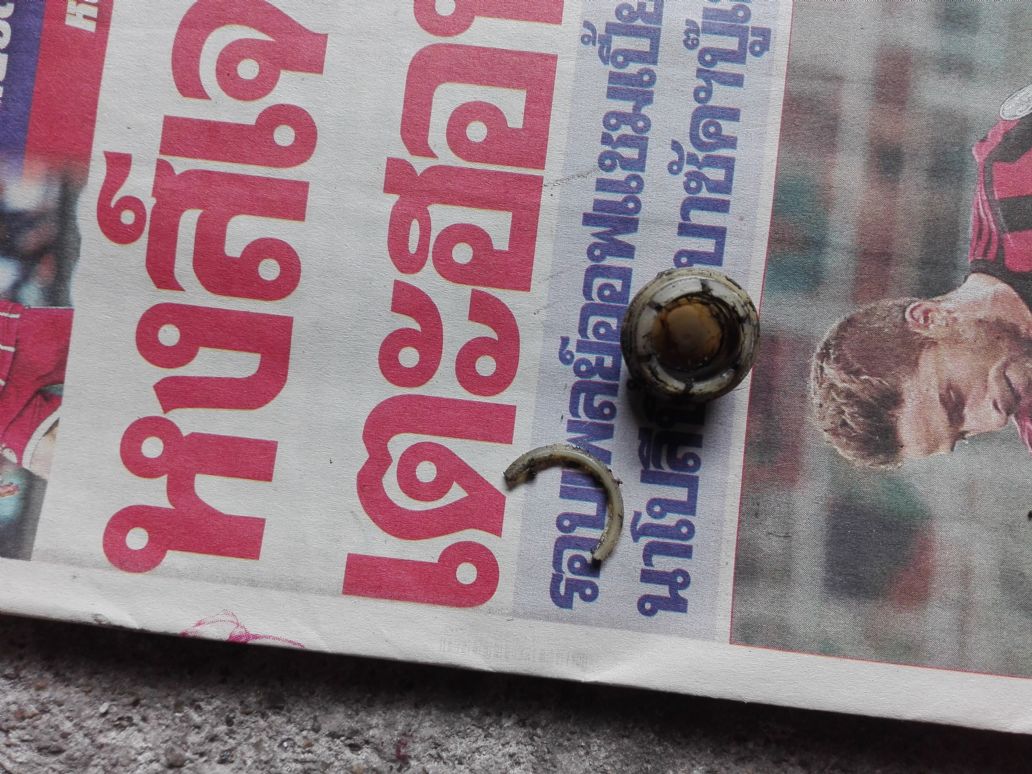 เอาออกมาแล้วจัดการงัดบูทเก่าออกเลยครับ สังเกตุจะกรอบแตกหมดแล้วครับ