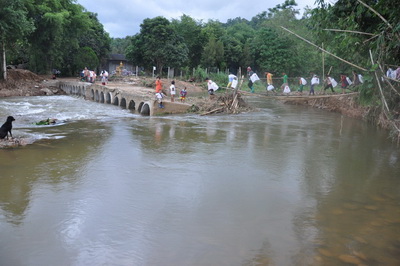 น้ำท่วมทางขาดแถวศูนย์เด็กเล็กบ้านท่าไม้ลาย