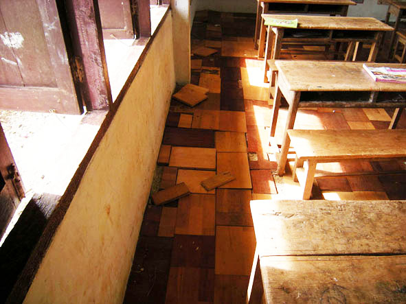 สภาพห้องเรียนที่นี่ เรียนกันห้องละ2ปเช่นป1กับป2 ป3กับป4 ป5กับป6 พื้นหลุดหมดแล้วจะปูกระเบื้องให้ใหม่