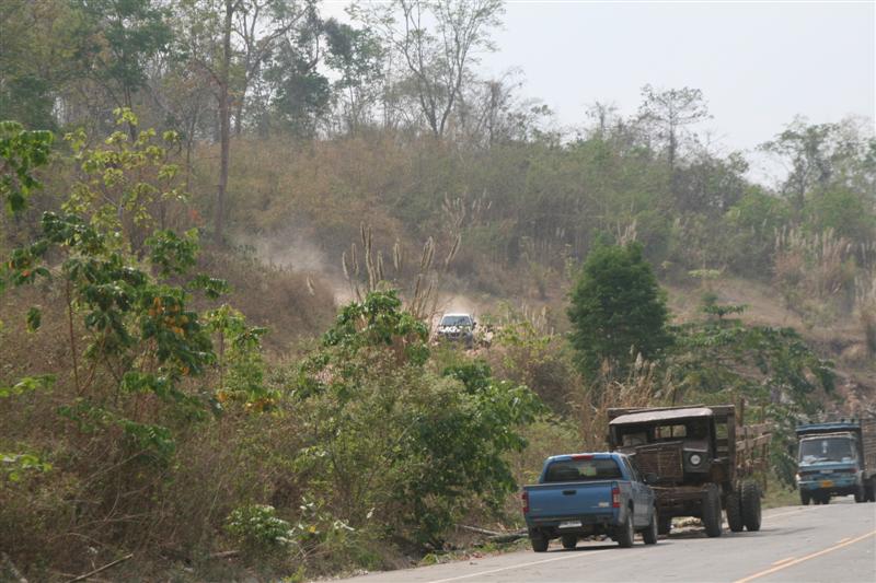 ที่เห็นผุ่นตลบมาโนนเป็นทางที่ลงมาจากด่านที่ม่ทหารพรานดูแลอยู่