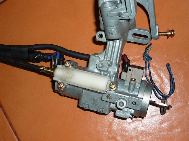 วิธีแรก เปิดฝาครอบคอพวงมาลัย ตรงใต้สวิทช์กุญแจมีสายสลิงเดินมาที่คอสวิทชมีฝาครอบสีขาว ยาวประมาณ 2 นิ้ว ตามรูป