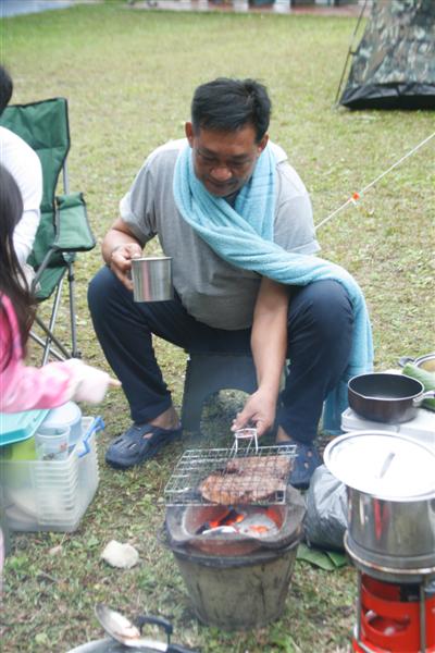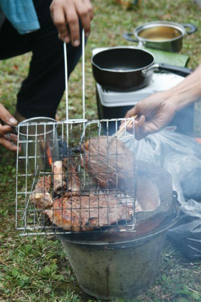 มือขวาถือนมเสือ มือซ้ายเนื้อย่างโดยพี่อาท