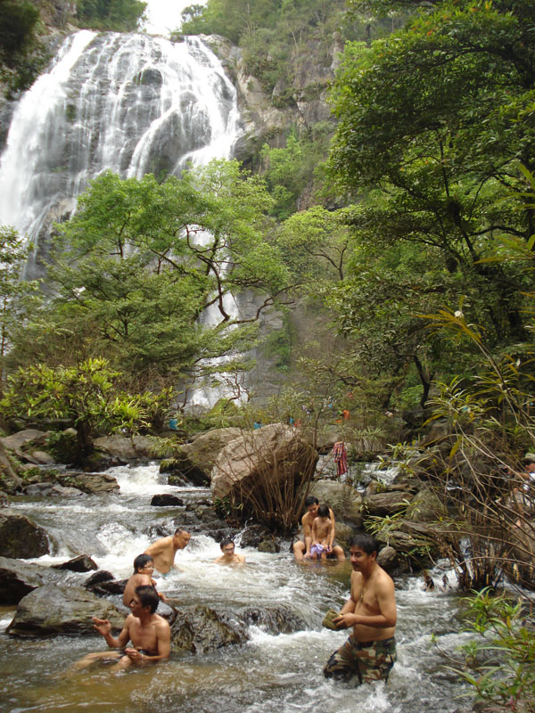 แลเห็นเขาเงาเงื้อมชะง่อนชะโงก เป็นกรวยโกรกน้ำสาดกระเซ็นซ่าน