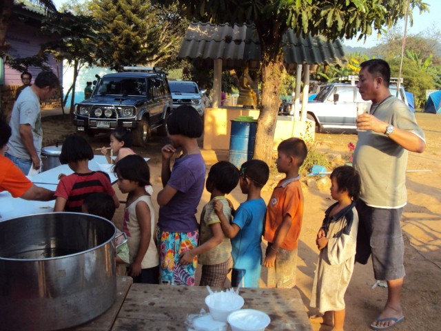 เย็นนั้นเรามอบสิ่งของให้กับเด็กๆที่มีผู้ฝากมามอบให้..ทานก๋วยเตี๋ยว..ช่วงค่ำชมภาพยนต์..ทานลาดหน้าและถั่วเขียวต้มน้ำตาลจากเพื่อนการไฟฟ้ายานนาวา..ท่ามกลางอากาศที่เย็นพอควร