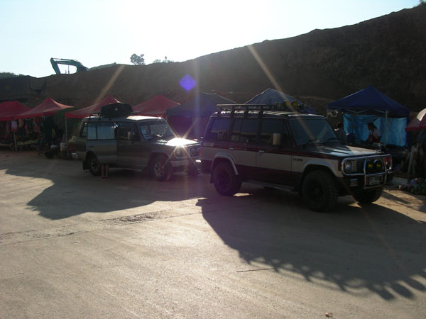 รวมพลปาเหลี่ยม 2 คัน 8 คน ส่วนรถคู้ 5 คัน 50 คน ไปล่วงหน้าแล้ว