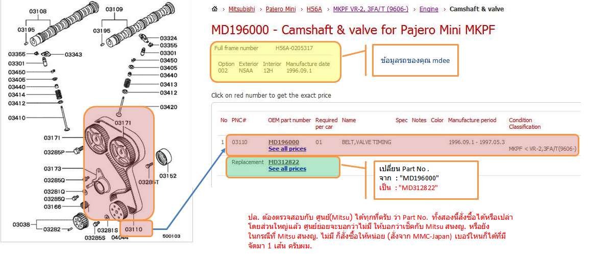 1) MD196000 => ในระบบ MMC-Japan เปลี่ยนเป็นเบอร์ MD312822 จาก : anan1973(anan1973) 5/3/2555 21:13:22 [113.53.56.206] |