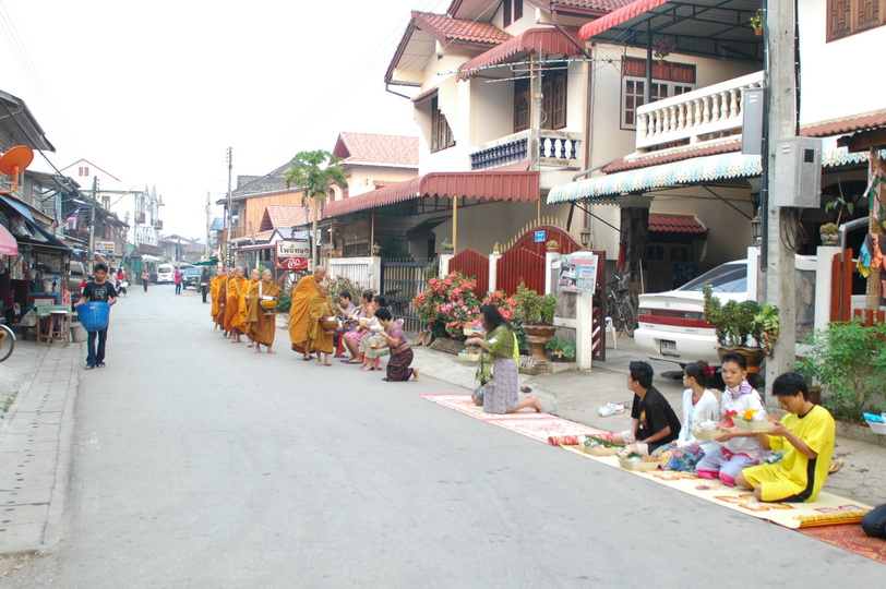 ยามเช้าก็ใส่ตามประเพณีของที่นี่นั่งบนเสื่อได้
