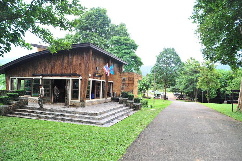 เดินผ่านประตูเข้ามามองกลับไปสำนักงานครับขายข้าวขายน้ำบริการให้เช่าเต็นท์