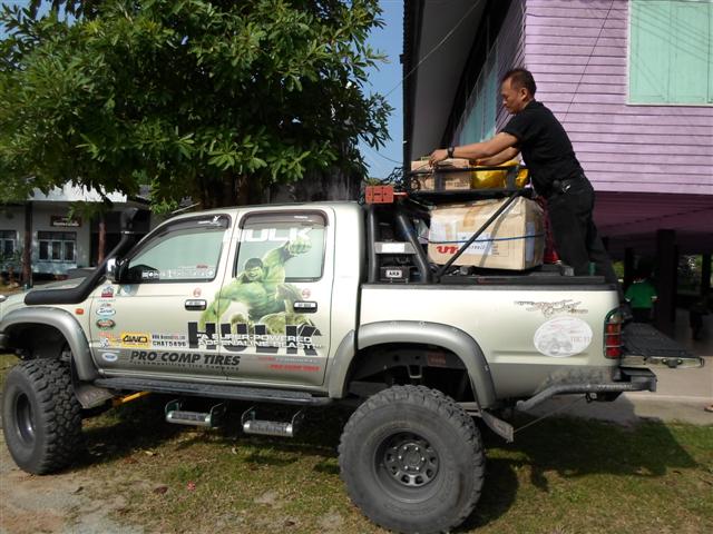 ถึงโรงเรียนก็ช่วยกันขนของลงครับ