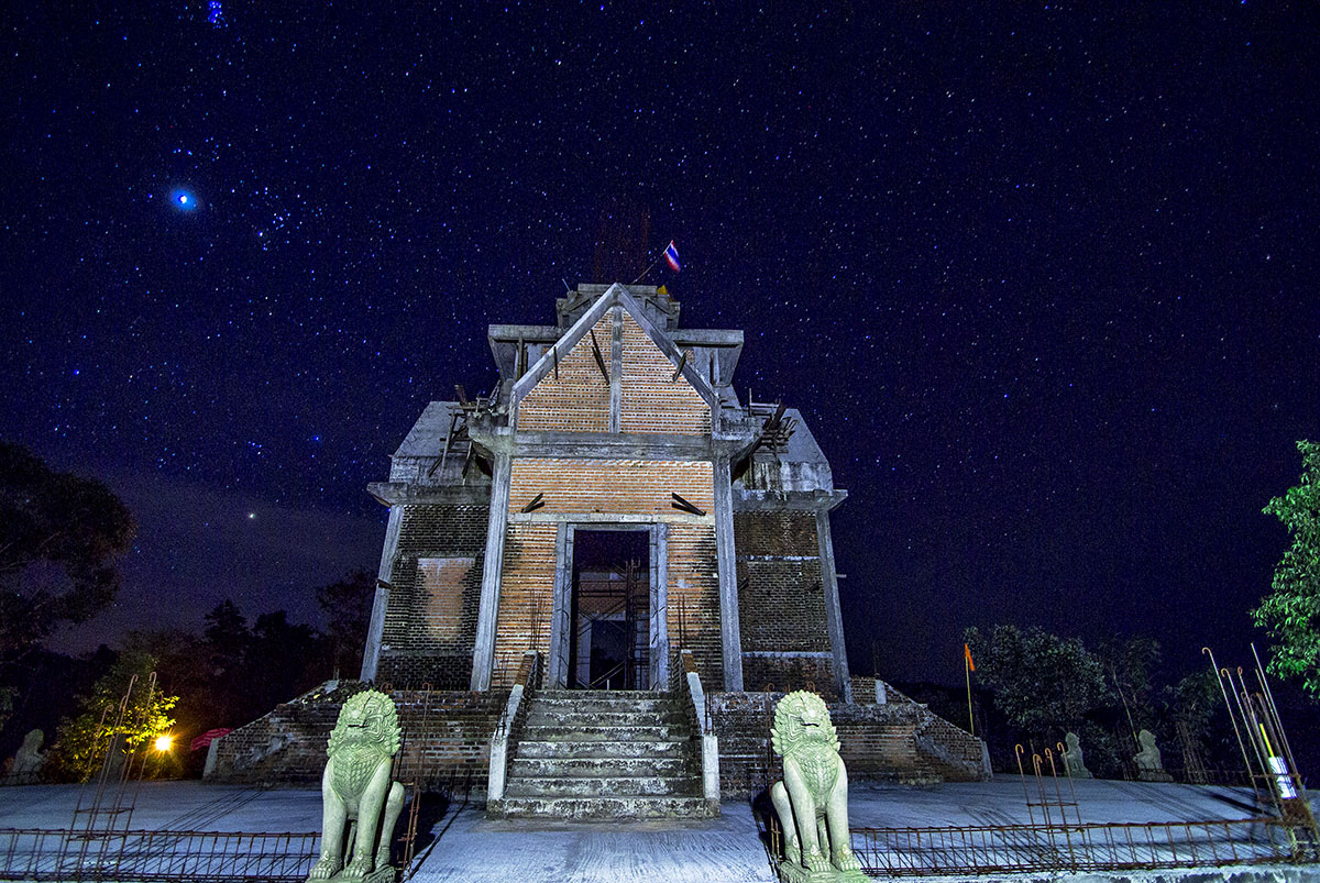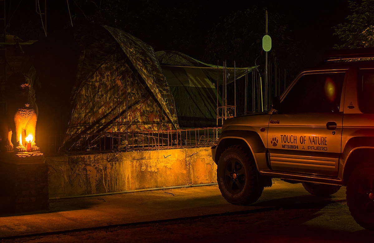 กางเต็นท์นอนกันตรงฐานเจดีย์