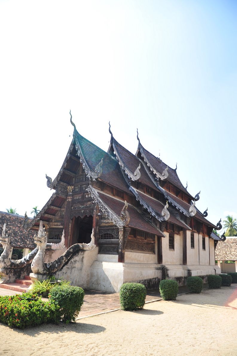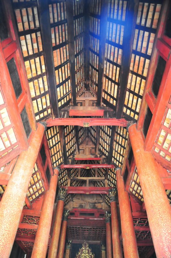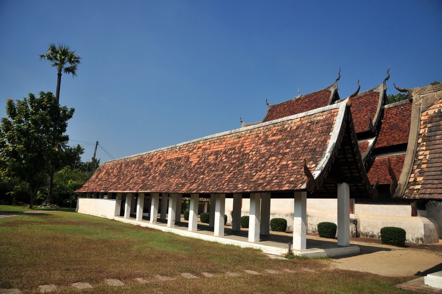 ของเดิมระเบียงรอบๆวิหาร โครงสร้างเป็นไม้ เสาไม้ กระเบื้องดินเผา สวยมากครับ