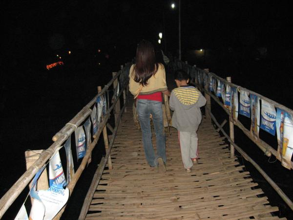 ลงมาพื้นราบแระแวะเข้าห้องน้ำเห็นสะพานใหญ่โตสำหรับที่นี่ไม่ค่อยได้เห็น มีธงชาติลาวและธงชาติญี่ปุ่น