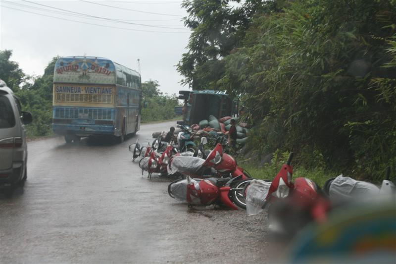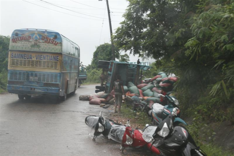 เสียเวลากับการทำเอกสารผ่านแดนพอสมควรเนื่องจากเจ้า JR พึ่งเข้าลาวครั้งแรกเลยต้องทำประวัติก่อน ครั้งต่อไปผ่านสบาย เอกสารเสร็จต้องรีปเดินทางไปวังเวียงเลยเดี๋ยวมืด ฝนตกหนักมากมีน้ำให้เล่นด้วย