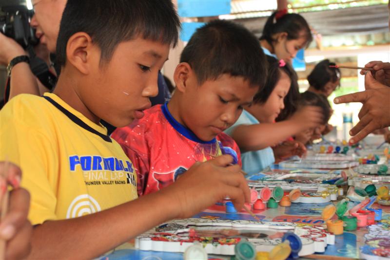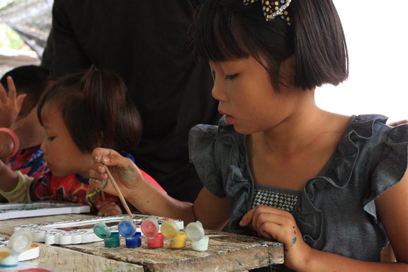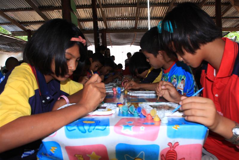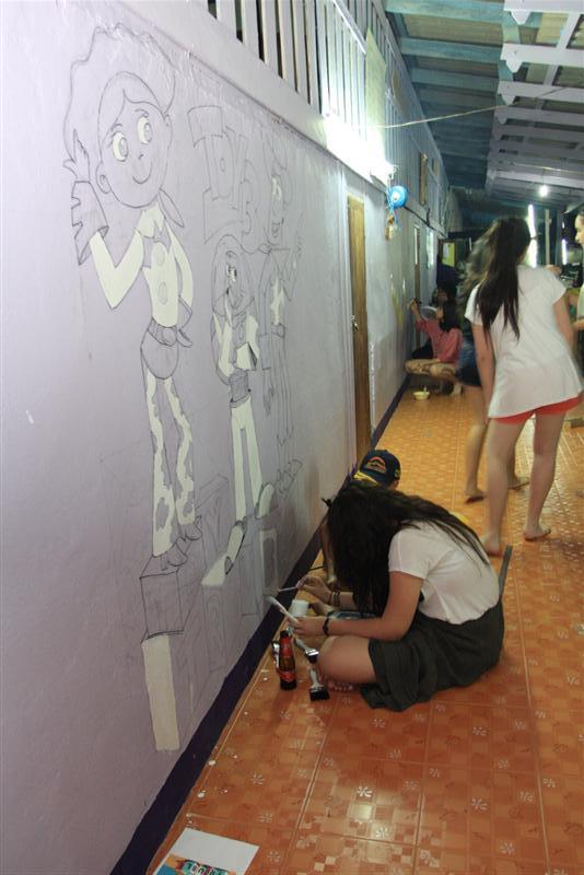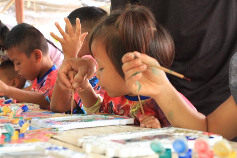 ร่างแบบเสร็จ ให้เด็กๆช่วยกันเริ่มลงสี