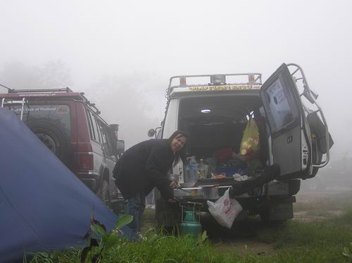 ซักพักก็มีสมาชิกมาสมทบ อีก 3 คัน คือ พี่มดดำ พี่อีธาน พี่วอน ทำให้วงสนทนาเริ่มคึกครื้น มีการเซอร์ไพรส์ อ. จอย ด้วยการปลุกออกมาเป่าเทียนเค๊กวันเกิด ท่ามกลางหมู่เมฆา และหยาดฝน เข้าใจหาที่นะ พี่มดดำ วงสนทนาก็แยกย้ายกันไปนอน ประมาณ 5 ทุ่มครึ่ง ครับ