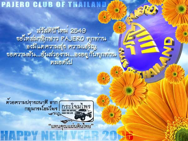 ในวาระดิถีขึ้นปีใหม่ ขออำนาจคุณพระศรีรัตนไตร จงปกป้องและคุ้มครอง พี่น้องและผองเพื่อน ชาว PAJEROและครอบครัว ขอให้อายุมั่นขวัญยืน มีสุขภาพแข็งแรง เปี่ยมด้วยความเบิกบาน ฐานะมั่งคั่งร่ำรวย ดุจดังมีกระเป๋าแห่งทองคำกับทุกๆท่านตลอดไป