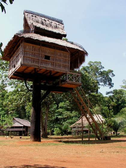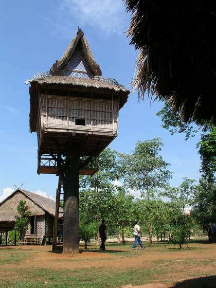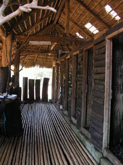 คำตอบที่ 12 หลังมื้อเที่ยงหลบความวุ่นวายที่ร้านอาหาร มาดูหมู่บ้านชนเผ่าที่อยู่ใกล้ๆกับที่จอดรถ เขาพยายามทำห้องน้ำให้เข้ากับยุค อันนี้ต้องชม