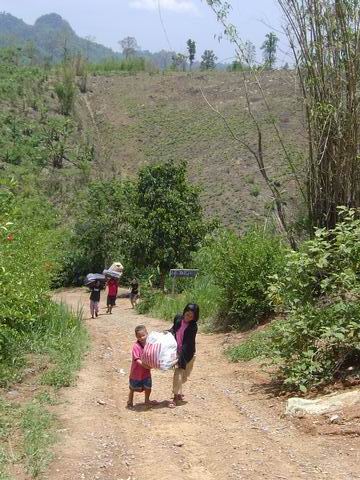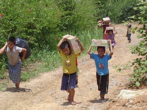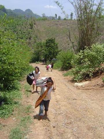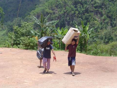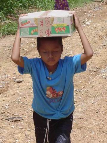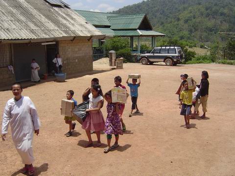 มีรถจอดขวางทางอยู่ 2 คันครับ ประกอบกับฝนตกหนักเมื่อวานเลยเดินสำรวจเส้นทางขึ้นไป และไปตามเจ้าของรถ แต่ทางแม่ชีก็เลยให้เอารถไถลงมารับของขึ้นไประหว่างขึ้นเนินสุดท้ายปรากฏว่าของที่บรรทุกไปเกิดหล่นทั้งหมดเนื่องจากทางชันและไม้กระบะรองของหักก็เลยให้เด็กๆช่วยกันขนขึ้นไปครับ พอเจ้าของรถคันที่ขวางมาขยับหลบก็เอารถขึ้นไปพร้อมเด็กอีก 3 คน เด็กๆมีความสนุกมากตะโกนเชียร์อยู่ในรถตลอดจนถึงข้างบน