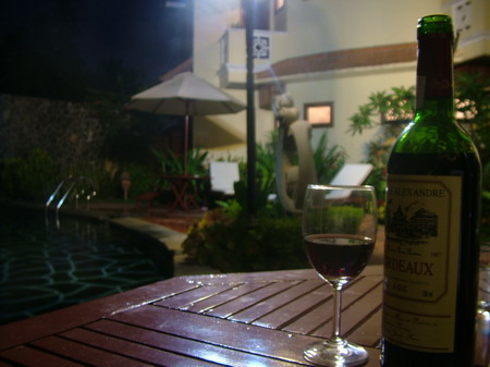 คำตอบที่ 80 อาหารก็เหมือนเดิมครับ กลับมาก็เลยมานั่งชมบรรยากาศริมสระน้ำ ในที่พัก พร้อมกับเครื่องดื่มที่ถูกใจ
