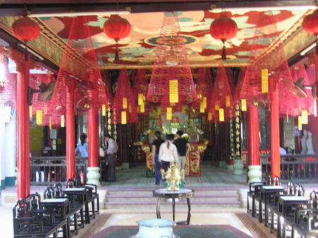 คำตอบที่ 110 วัดจีนครับ สังเกตุธูปสีแดงที่อยู่ด้านบนเพดาน เค้าบอกว่าจุดได้ 1 เดือนครับ