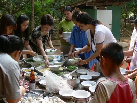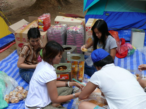 8.00 น. ปรุงอาหารเลี้ยงเด็กและชาวบ้านกองม่องทะ