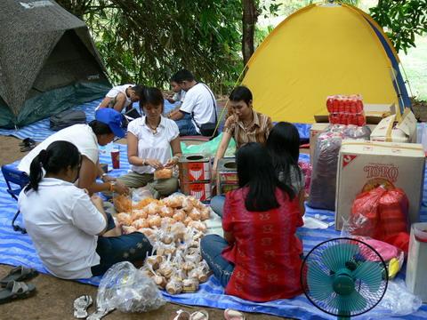 จัดเตรียมที่พักและพักผ่อนตามอัธยาศัย( ไม่มีไฟฟ้าใช้นะครับ )