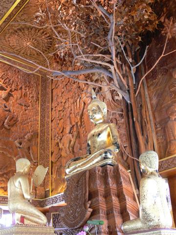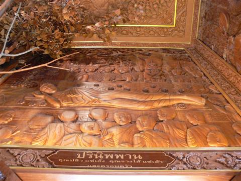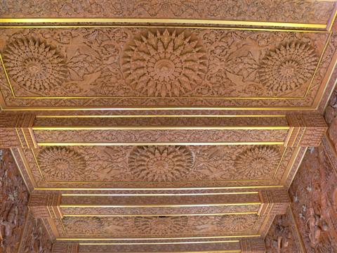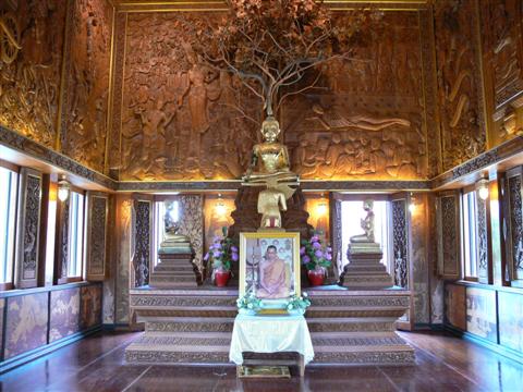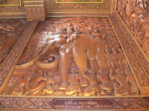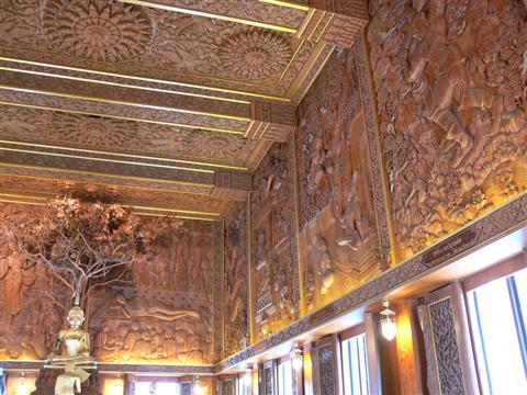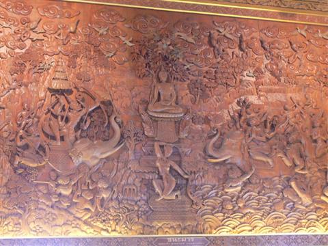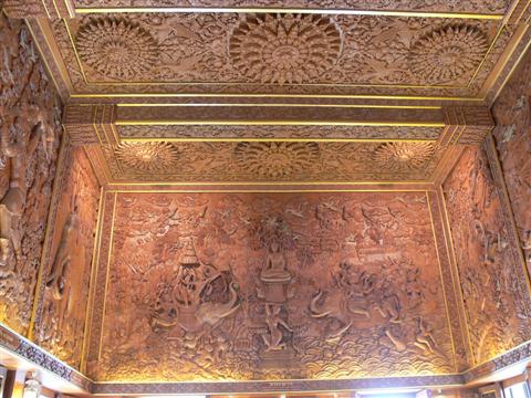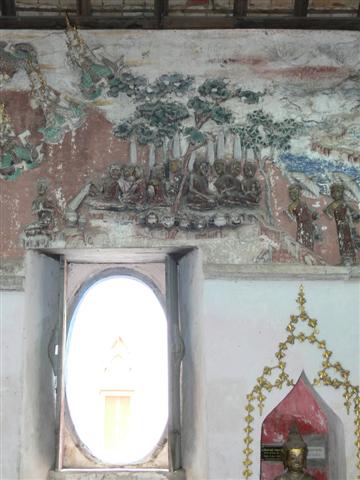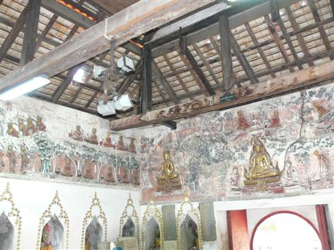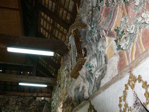 ภายในวิหารมีจิตรกรรมฝาผนังนูน ที่สวยงามแปลกตา เป็นอย่างยิ่ง โดยแบ่งเป็น 4 ด้าน คือ